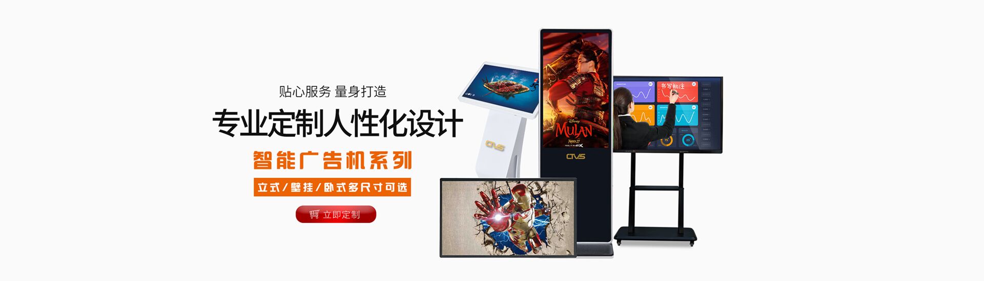 深圳中視智能科技有限公司成立于2013年,是一家專注于智慧商業液晶顯示設備的研發、生產和銷售為一體的高新技術企業,是提供一站式智慧商顯方案的品牌商。中視智能憑借強大的自主研發能力,產品涵蓋:數字標牌廣告機系列,紅外觸摸查詢一體機系列,電容觸摸查詢一體機系列,教學、會議大平板系列,戶外廣告機系列,拼接大屏系列,監視器系列,AI人臉識別智能設備系列等。中視智能的產品已覆蓋政企展廳,智慧社區、醫療、銀行、新零售云貨架,物聯網等諸多應用場景,公司始終堅持以誠信為先、客戶至上、持續創新、永無止境的絆營理念,以專業,高效的創新產品提供者為定位,建立了完善的產品體系、售后政策和服務支持,致力于成為全球領先的一站式智慧商顯方案品牌商。