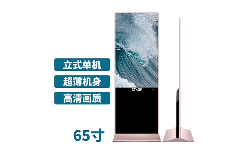 深圳中視智能商顯科技有限公司專注于高品質液晶廣告機的研制與生產銷售,旗下立式液晶廣告機主要有常規模組款與超薄款兩種,此款產品顯示尺寸為65寸,采用超薄式外觀設計,U盤數據存儲,支持高清視頻及圖文播放,廠家直銷,價格優勢顯著,支持定制化與批量化生產服務。